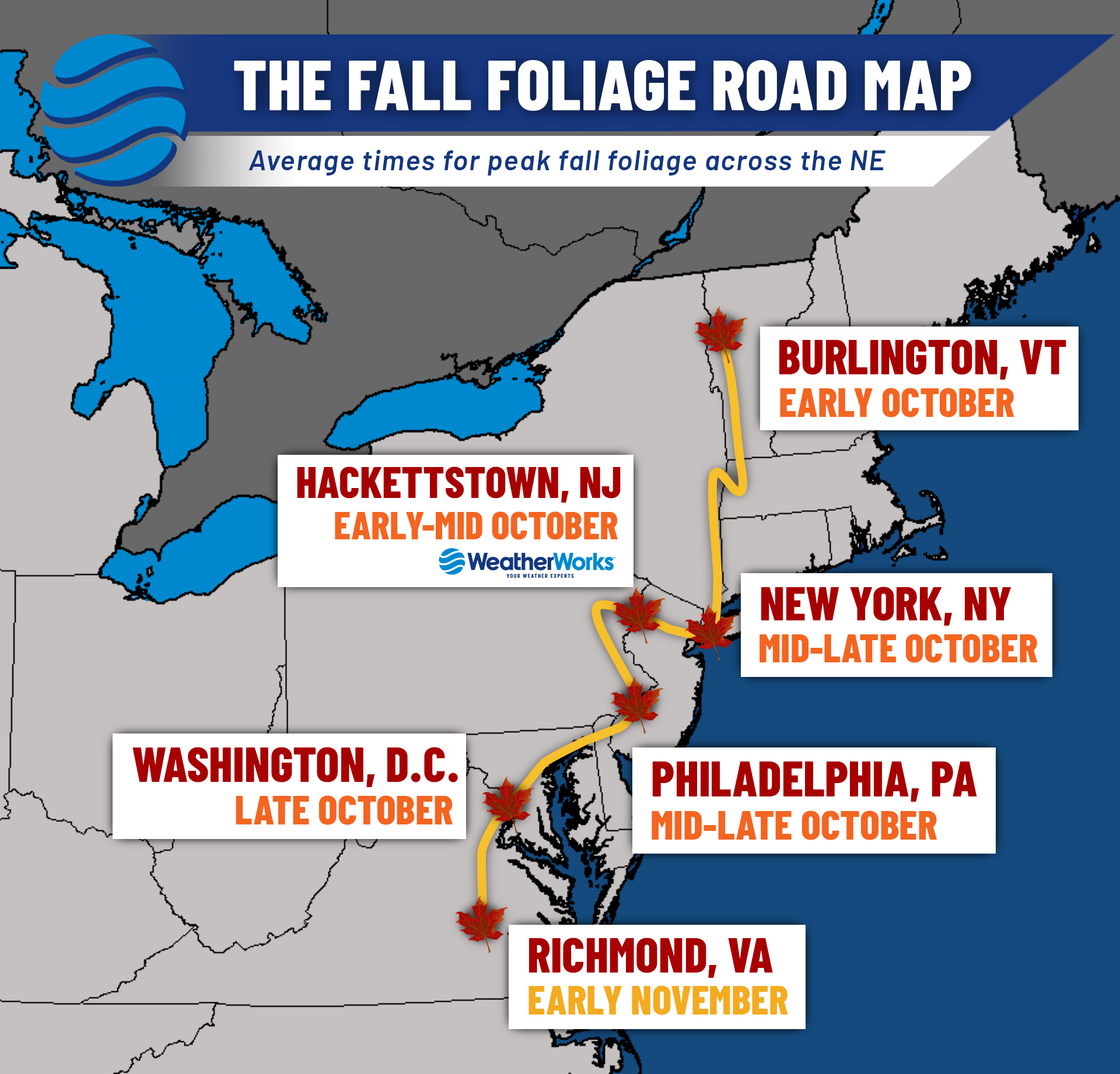 So to summarize it all: The exceptionally wet spring for the Northeast and Mid-Atlantic, paired with a drier and warmer than normal summer can still lead to some fairly vibrant colors this season. In any case, the fall foliage season is always a wonder to observe no matter what ends up happening. If you’re able to spend some time in nature this upcoming month or two, make sure to take a look around at the scenery and enjoy the beautiful hues that will be gracing the trees. Happy Autumn!
