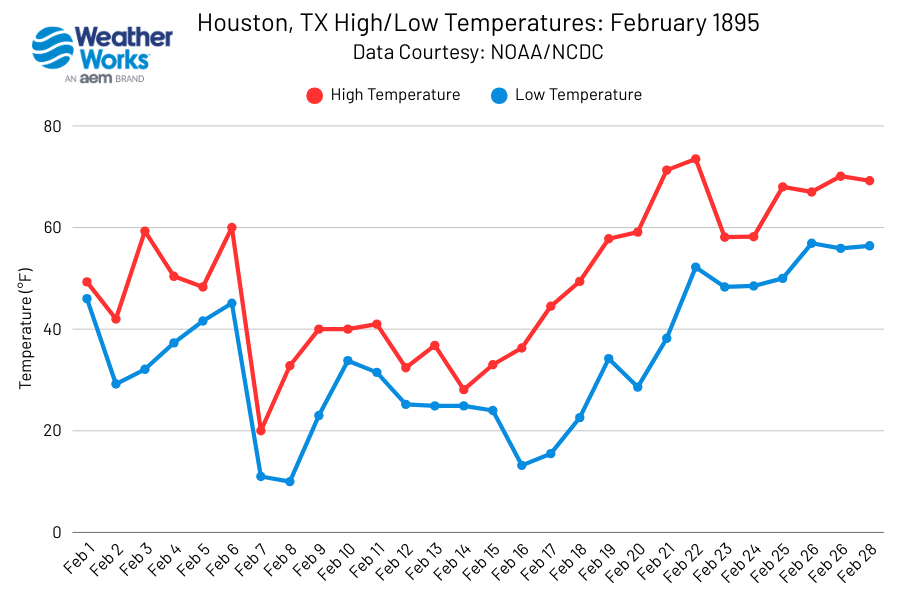As we all know, accumulating snow along the Gulf Coast is extremely rare, as cold air typically struggles to make it that far south. However, the winter of 1894–1895 was an exceptionally cold one for the eastern United States, including the southeast US. Historical records from Houston, TX show that February 1895 was the coldest February on record. The coldest month on record goes to January 1978.
